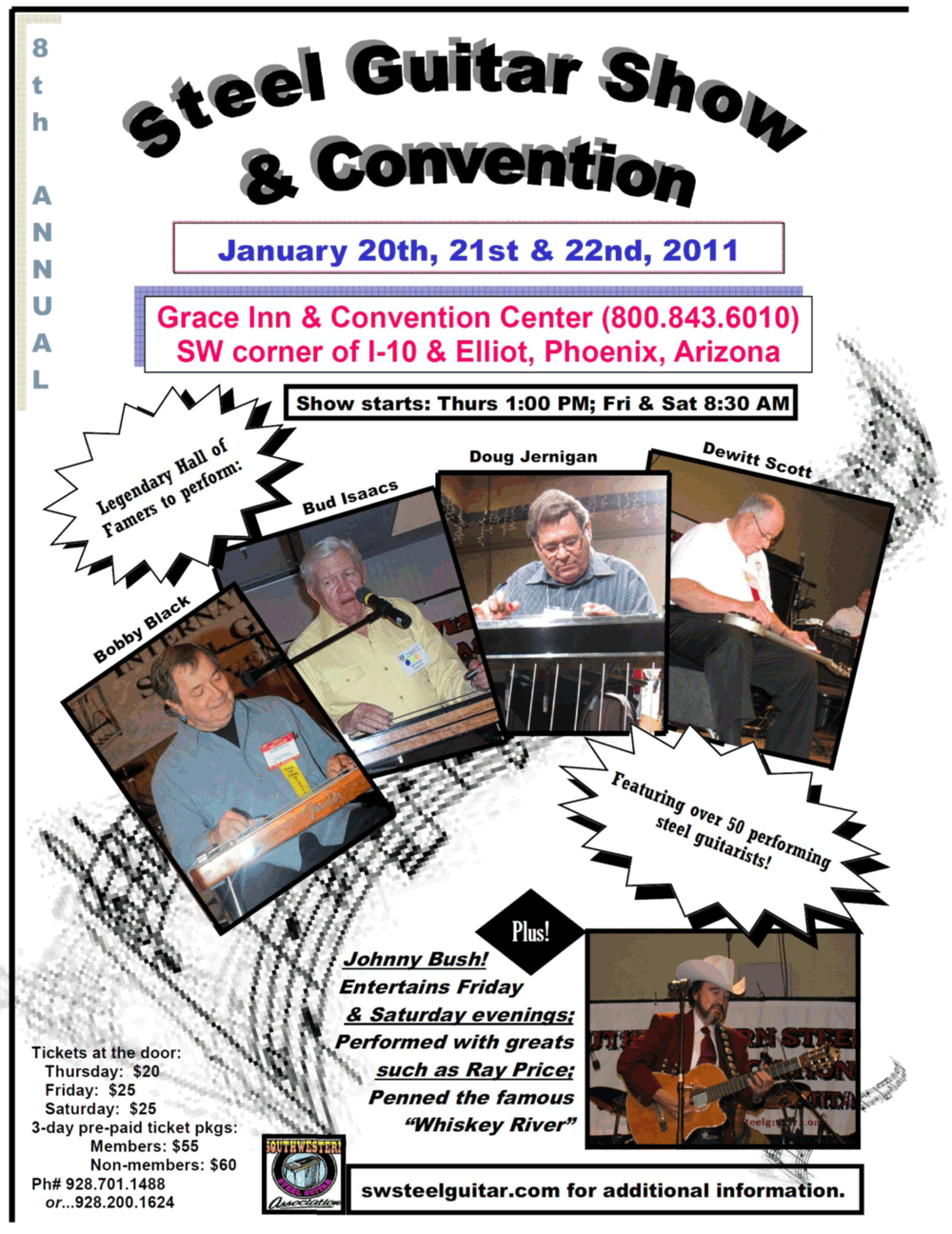 Our Preliminary List Of Annual Show Performers Include Hall Of Famers Bobby Black, Dewitt (Scotty) Scott, Bud Isaacs,and Doug Jernigan.